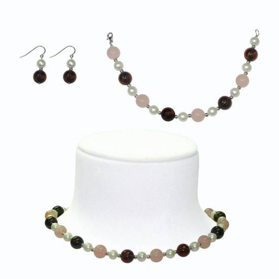The fresh water pearl jewelry set will add an elegant touch to your special day. It features rose quart stones, smoky quartz stones and rhodium-plated stones. This gorgeous jewelry set is perfect for both casual and formal events.