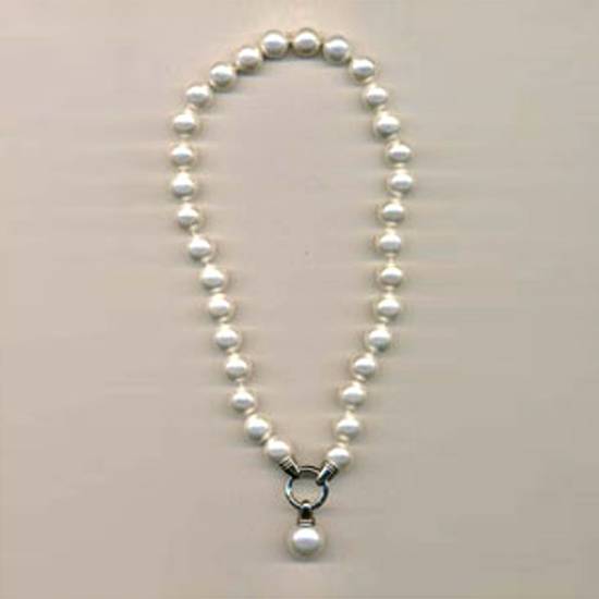 This fresh water pearl necklace is a classy and elegant jewellery for ladies and women. Threaded with white pearls in uniform round shape attached with a pearl drop, the necklace is perfect for matching formal and evening dress.