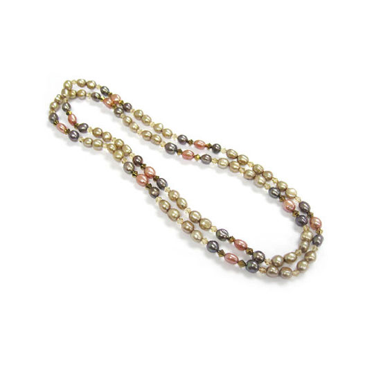 This necklace is crafted with fresh water pearls for a sophisticated touch. The subtle luster in black, red and bronze is especially pleasing to the eye. You can pair this gorgeous piece with a beautiful evening dress.