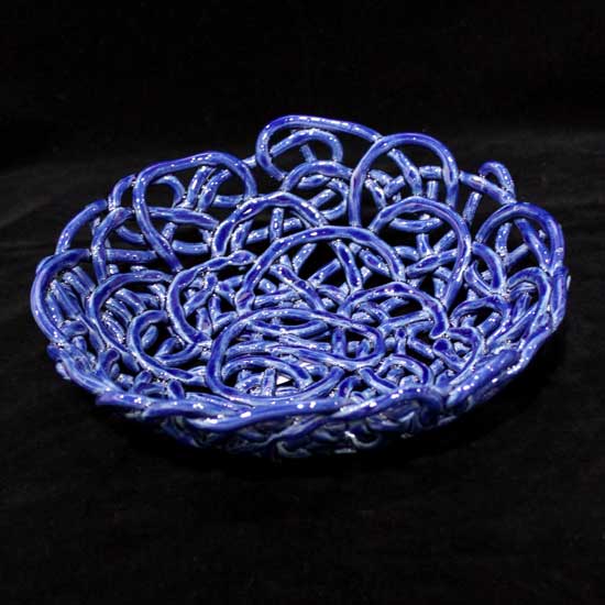 This gorgeous fruit basket comes in the shape of a nest. With ceramic parts interlacing each other, the basket displays a touch of sophistication. Painted in stunning blue, the fruit basket looks more unique and splendid. Decorate your table with this brilliant basket.