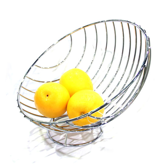 The fruit basket here boasts a contemporary design for modern families. The metal-wire structure looks like an inclining Chinese wok, with fine wire stripes. The surface comes with a shiny finish to display fruits in an elegant manner.