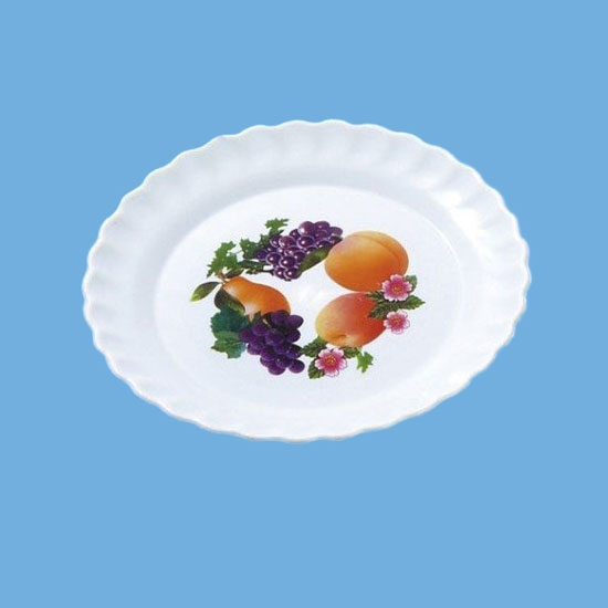 This is a fruit plate that is made of safe and non-toxic material. The colorful fruit patterns add a touch of style to the whole piece. This fruit plate offers an extra-long service life.