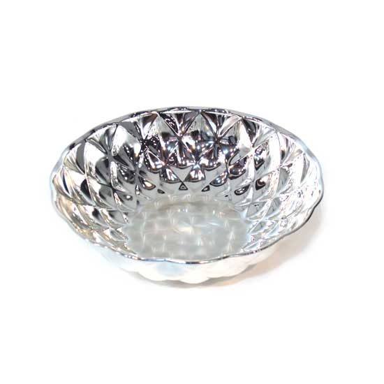 This glossy fruit tray features a silvery toned design for a unique visual effect. It is crafted in Italy to guarantee superior quality. This artistic fruit tray is a great addition to your table top.