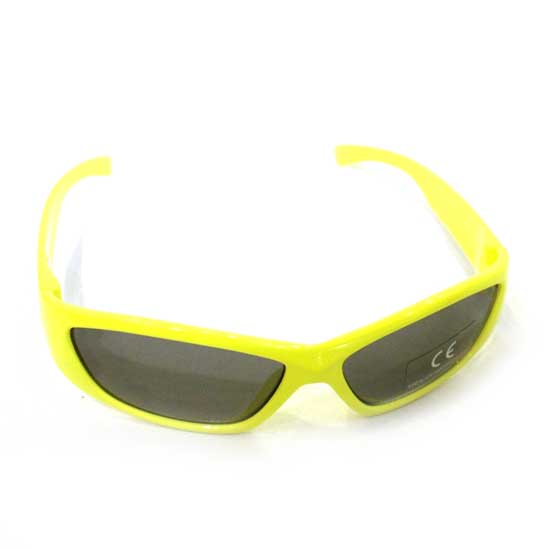 These stylish full-frame sunglasses feature sharp yellow construction. The over-sized, curved black lens guarantees effective UV ray protection. These sunglasses are fashionable and functional accessories in the hot summer.