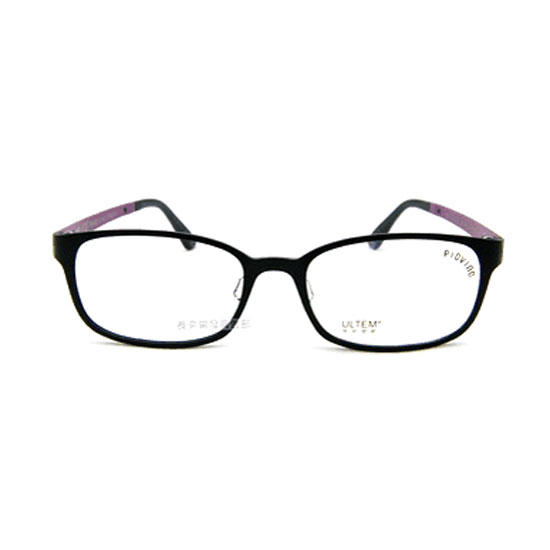 This is a pair of full-rim eyeglasses in black with purple temples. In a close-fitting style, these glasses are comfortable for long-time wear. This simplistic yet chic pair of eyeglasses is a great choice for daily wear.