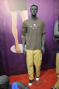 Featured here is a grey-colored male mannequin. It comes with a standing posture flunting a relaxing mood. Any outdfit is matched with its role model body figure handily.