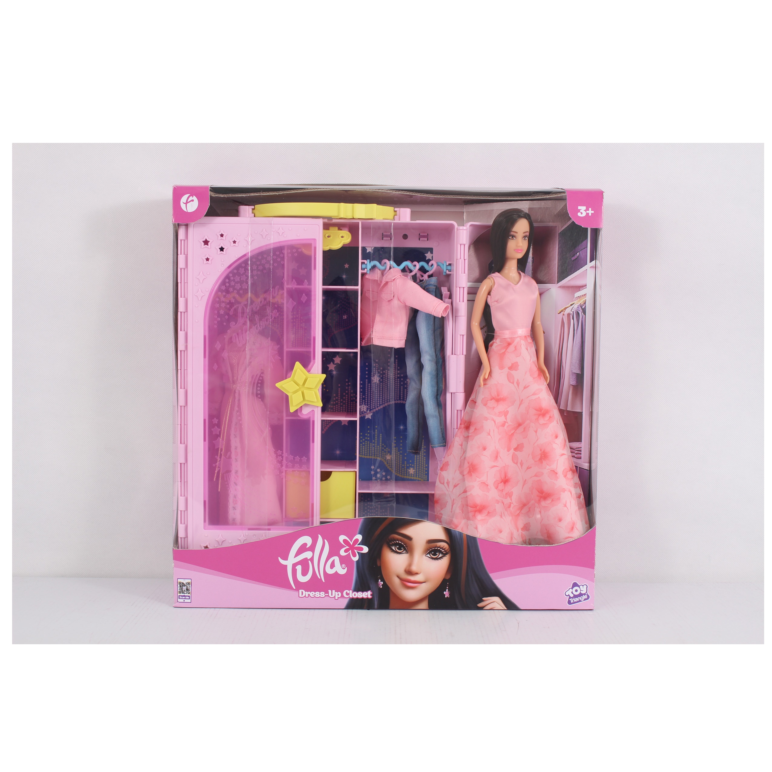 Fulla Doll Dress-up Closet Set including a 12" Fulla Doll, a pink closet, robe, denim suit, floral dress