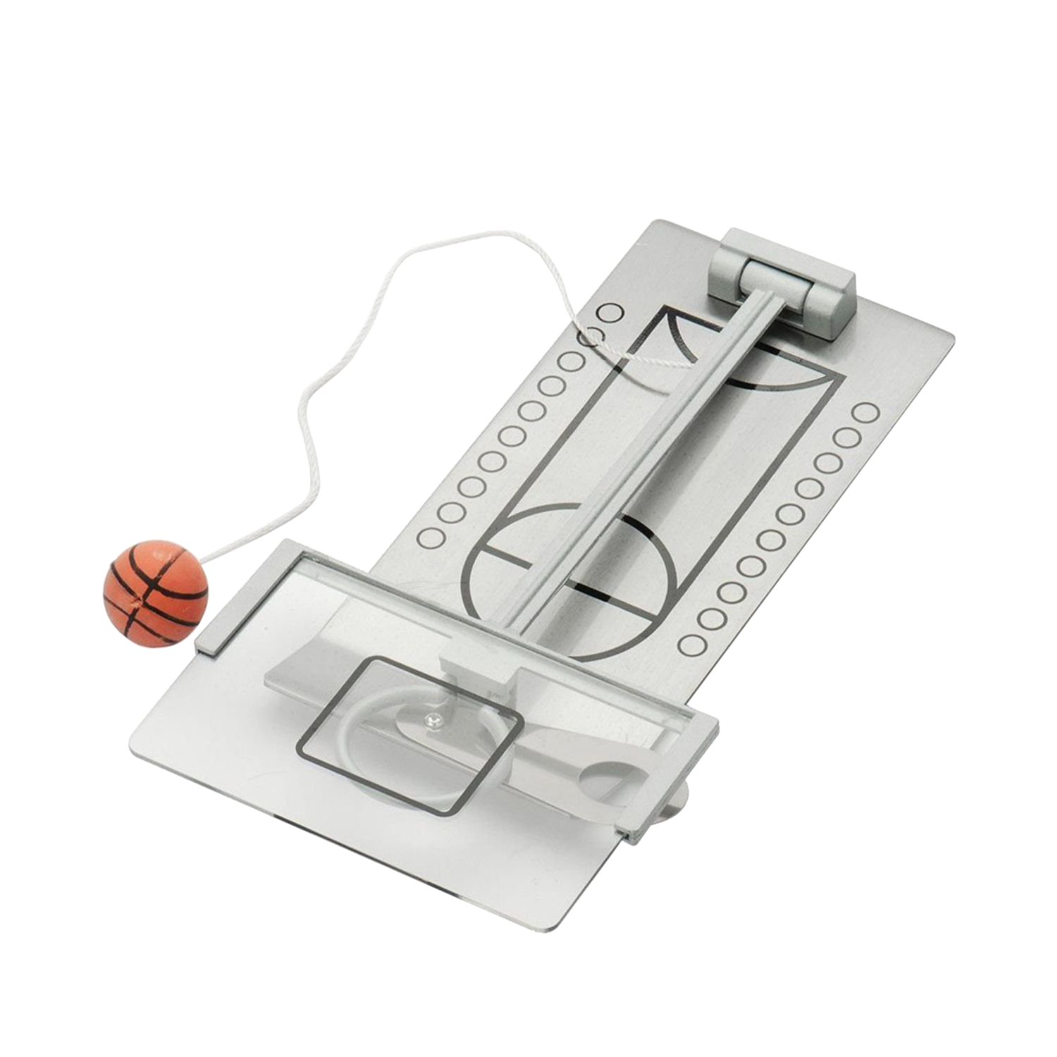 The backboard folds up for easy storage and can even fit in a desk drawer, the basketball is attached so it cannot get lost