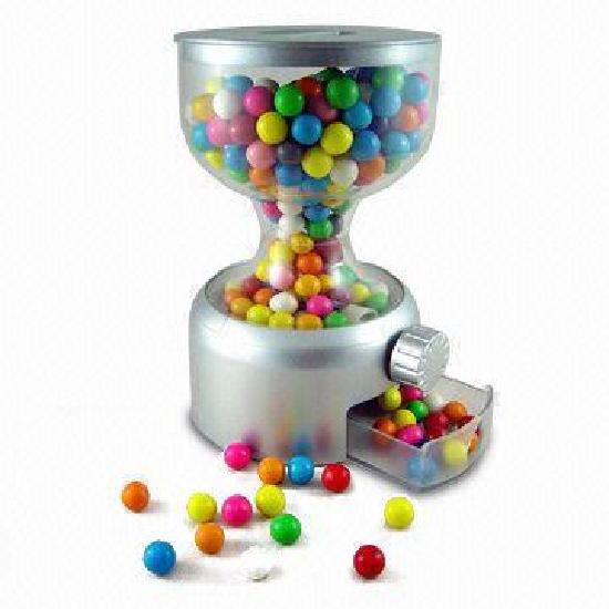 Can dispense snacks, peanuts, candies, gumballs, coffee beans and various confections.
