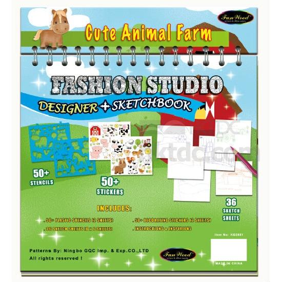 Funwood Paper Children Color Book With Pp Stencil Farm
