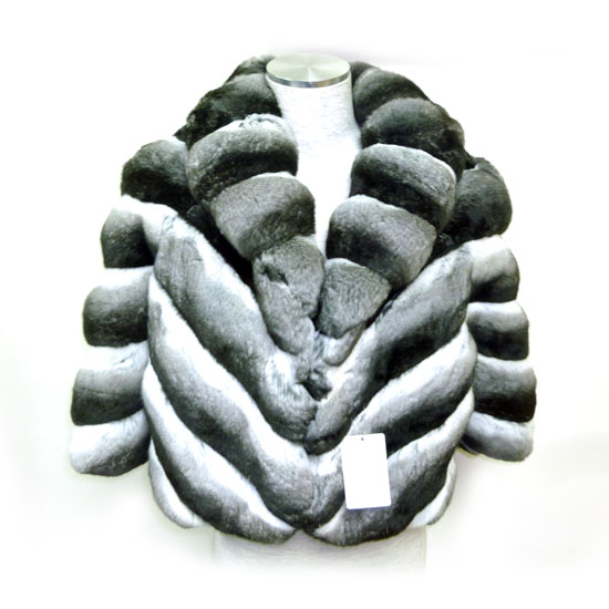 This fur jacket features an intriguing striped pattern in gradient shades. A wide lapel gives this jacket a sophisticated touch. This fine fur jacket provides you with warmth and comfort in winter.