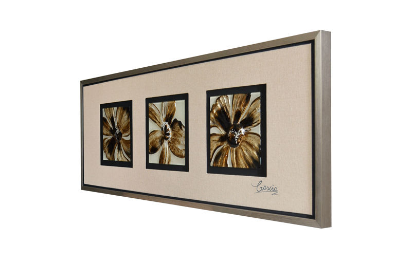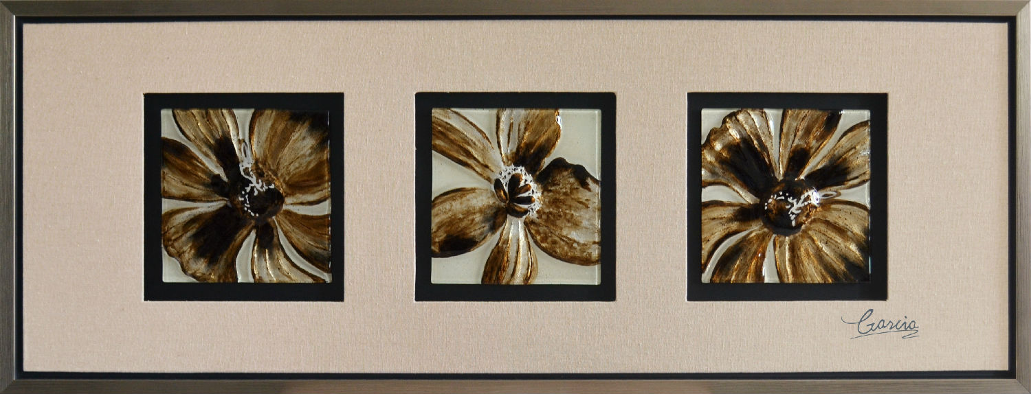 Material: fused glass, hand-painted, flax, PS frame.