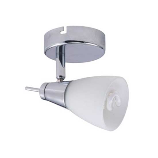The spotlight bestows a contemporary design with a hint of elegance. The frosted glass shade in white avoids direct glare, providing warm and cozy lighting. This handsome energy-saving spotlight is perfect for accent lighting or other lighting applications.