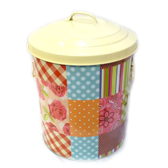 The garbage bin is completed with an ample storage capacity. It is covered with a lid that prevents odors from disseminating. The body is ornamented with checks of fancy patterns.