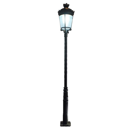 • The frame of the luminaries is made up of 3 parts, a ring of crown in cast aluminum supported by 4 ribs in cast aluminum fixed to the base flange. Mounting for Ф26 held with 2 stainless steel screws.