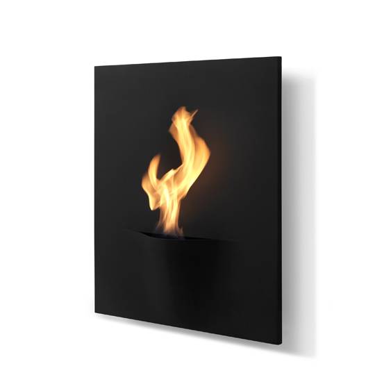 This is a eco-fireplace which has a unique design that looks like a painting on the wall. The aliented image of the fire captured in a framed black painting produce a fantastic sensation.