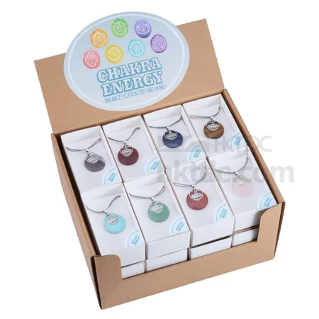 A well selected assortment of beautiful gemstone donuts with yoga charm, these necklaces represent the different energy zones in Chakra.