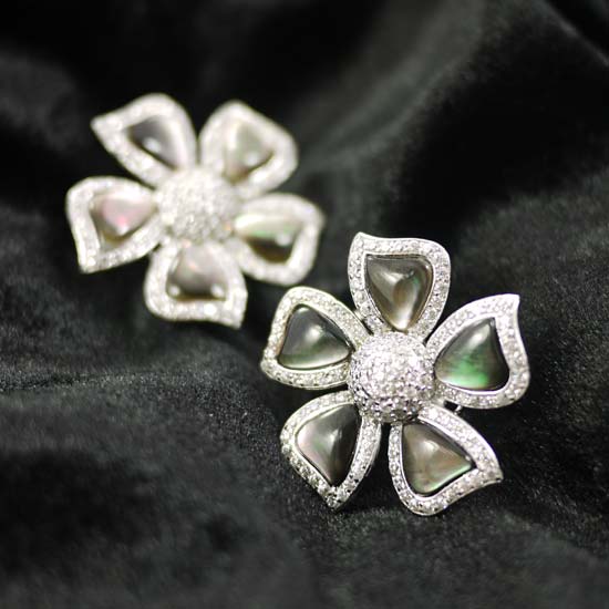The elegant pair of earrings comes in a delicate floral shape with a green semi-transparent gemstone setting. They are rimmed with silver with a silver charm in the center. Accessorize a feminine style with this pair of earrings.