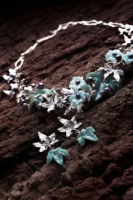 Set of necklace and earrings.