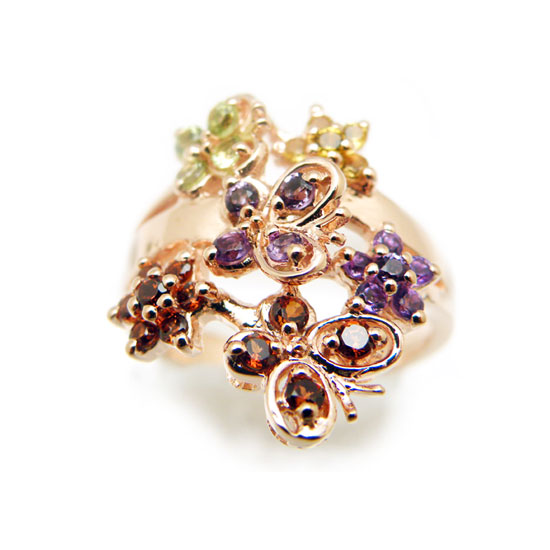 This 925 silver ring is designed with butterfly and floral decorations on the top. The colorful faceted gemstones, which emit irresistible luster under light, make this ring eye-catching and glamorous. Spruce yourself up with this dainty finger ring.