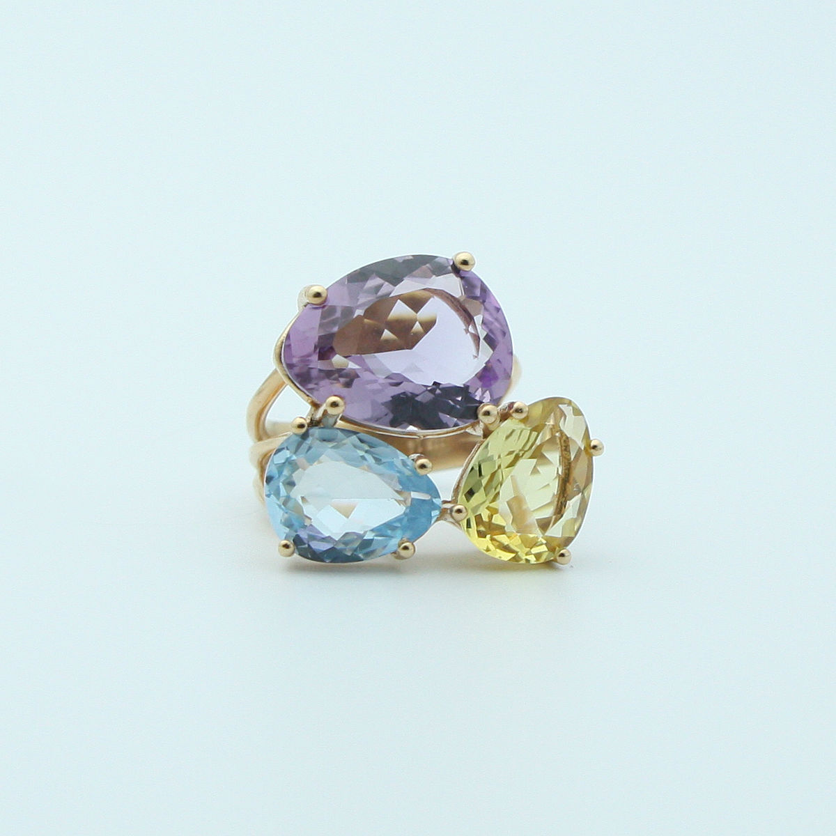 amethyst, citrine and blue topazsilver ring in rose gold plating