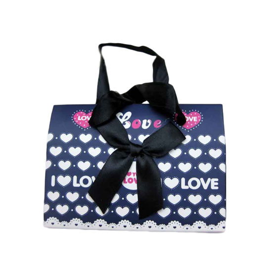 This gift bag comes with a stylish design. It is designed with heart-shaped patterns for an eye-catching look. This printed gift bag is finished with a ribbon for a fashionable look.
