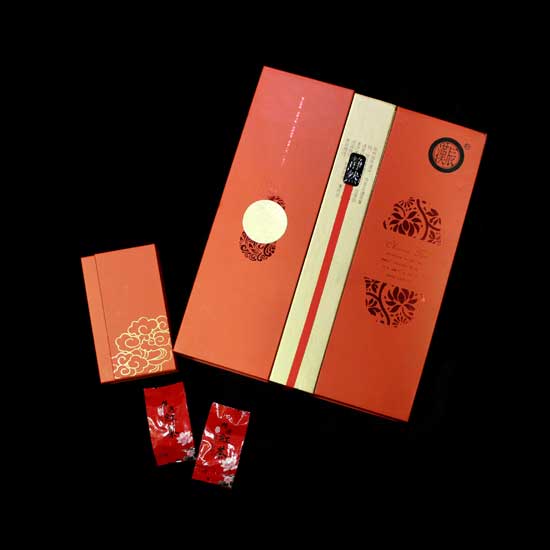 This refined Chinese black tea set is finely packaged in an exquisite red box. The liquor of the black tea is golden with refreshing sweet fragrance. It tastes mellow and smooth with a lingering aftertaste.