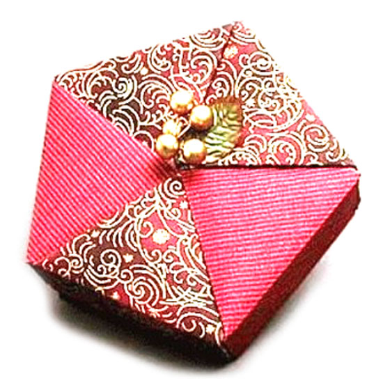 This gift box comes in a pentagon shape for a unique look. The box features exquisite patterns printed in a gold color. It is made of premium quality materials for long lasting and repeated use.