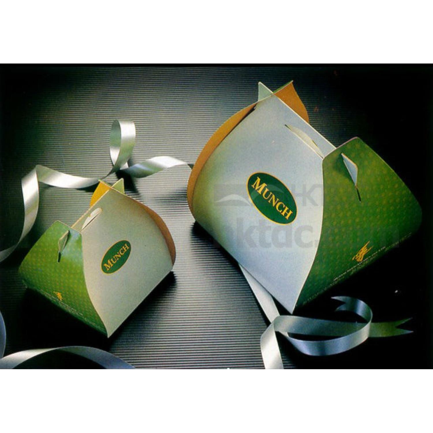 This beautiful gable box is going to be the perfect idea for packing your freshly made cupcakes. Featured here is a gift box with a gable handle top for added portability, while the word “munch” is printed right in the middle. Fold the two sides up and lock onto the tabs extending from the handle.