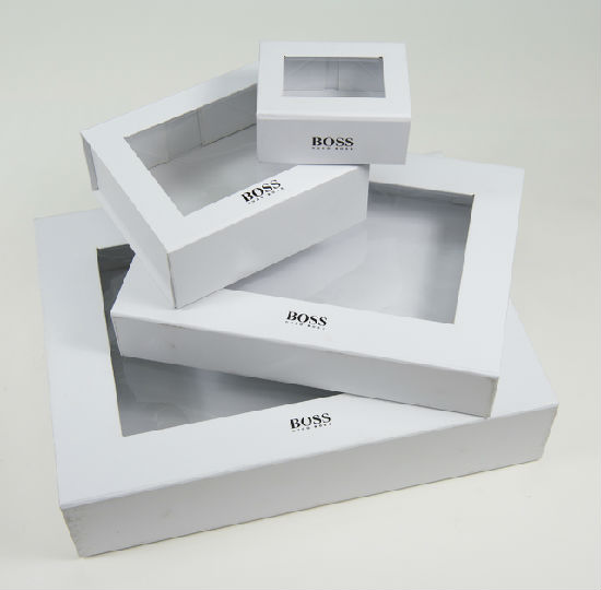 white paper with hot stamping logo with clear window