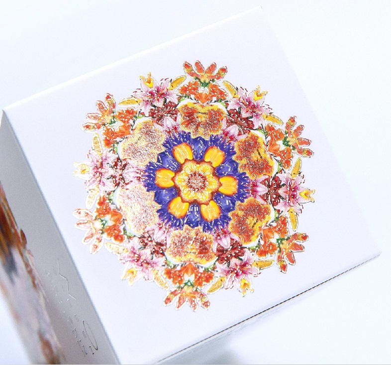 This is a box style presented with effects in flower pattern, which including the HUV printing with PMS & fluorescent colors, and shown a new technical effects of 3D UV and hot stamping which could produce in different layer and pattern without traditional plate during production.