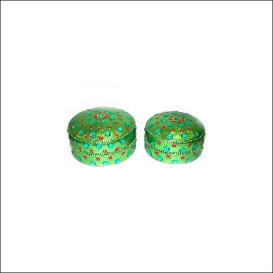 Round in shape in green colour with colourful stones decoration