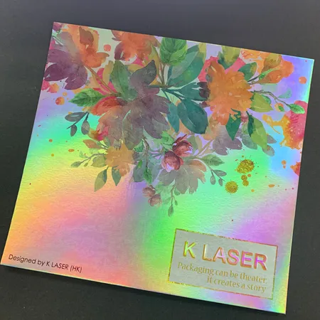 This is the card made by K Laser 100%True seamless PET Rainbow film and simple offset 4C + white printing.