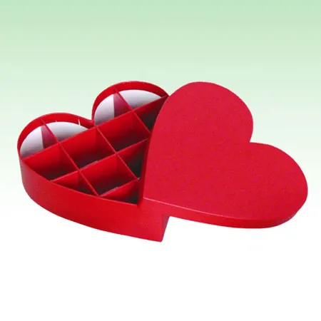 This unique gift chocolate box is designed in a heart shape. It comes in bright red for a vibrant look. This gift box features multiple compartments inside.
