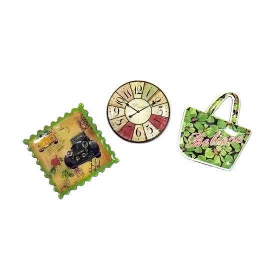 These displayed magnets feature stamp, clock and handbag shapes for a novel touch. They are durably made to ensure a long service time. These chic magnets are great for decorating your fridge.