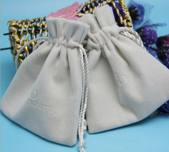 1.Material: 1C velvet material+ silk printing logo+drawstring
