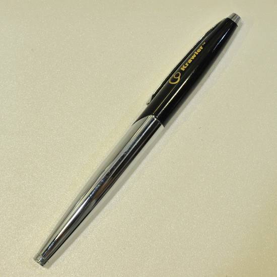 This is a gift roller pen. The pen is modern and stylish with its straight shape. The metal barrel is high polished for a shiny effect.