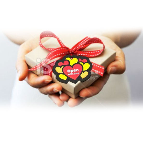 This is a gift tag with a dainty and beautiful appearance. It can be tired with all kinds of gifts in any shape. The red and yellow patterns add a romantic touch to this design.