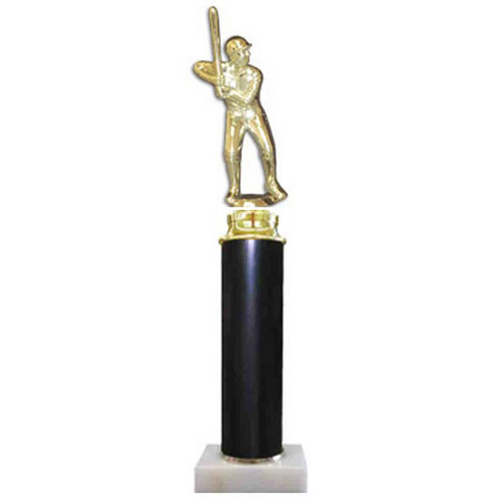 This is a trophy with a classic and dainty design. It features a baseball player figure on top in shiny gold. The sturdy base allows it to stand on any desktop steadily.
