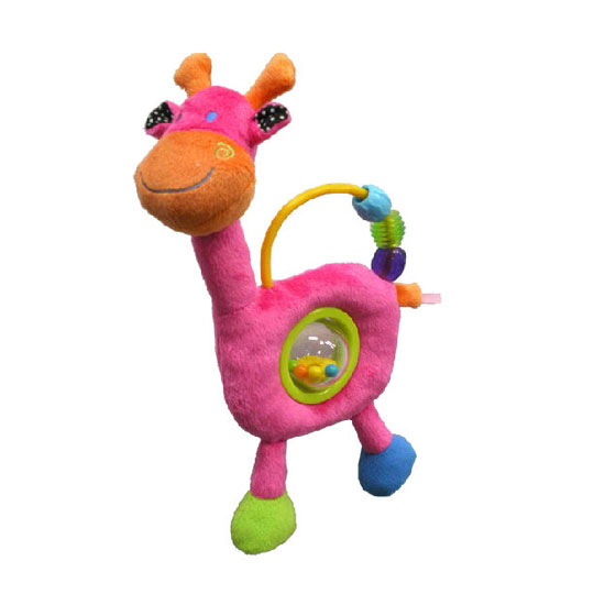 This colorful and adorable giraffe soft toy is specially designed for babies. The moving beads along the handle can stimulate babies to touch them. The spinning ball in the middle will also rattle when babies shake the toy, creating an extra stimulation.