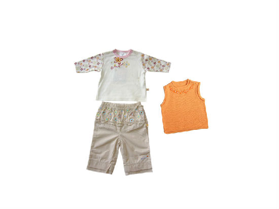 - This set of girl garments come with T-shirt, pant, sweater.