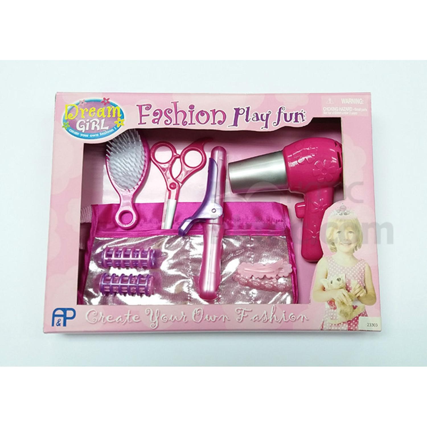 Girl beauty set with hair dry, with hair clip and hair roll. And bag