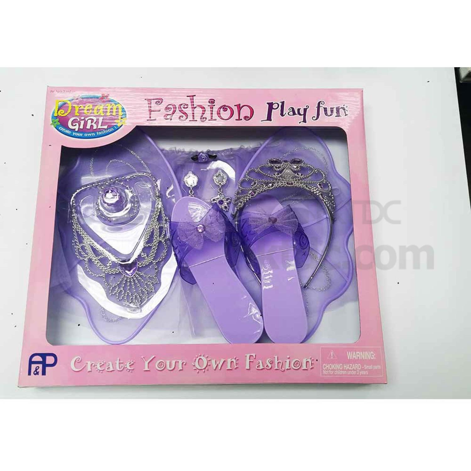 Girl beauty set , with dress, tiara, jewellery, ring, and wing.