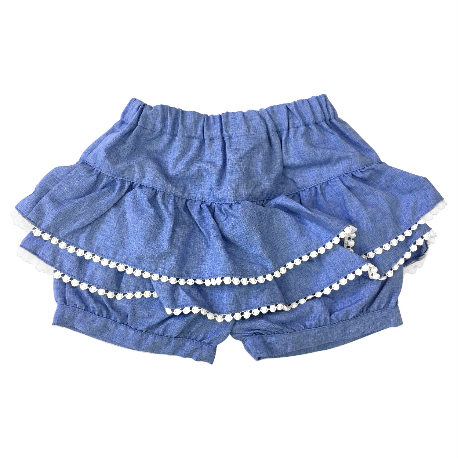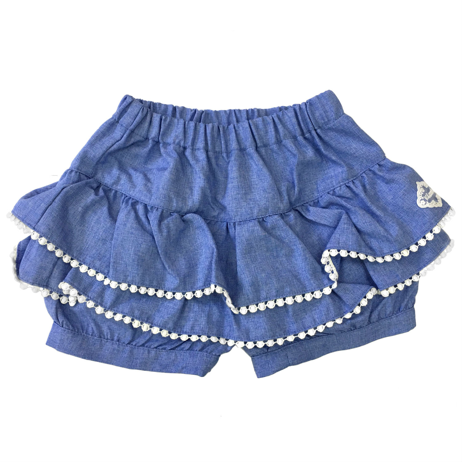 Add some wide-legs to your summer wardrobe with this comfy culotte. The culotte pants flaunt lace-trimmed tiered layers for some added frill, while its relaxing silhouette partners with elastic waistband to wrap your little ones in unmatched wearing comfort. Team with a cami and flip flops to finish a chic summer look.
