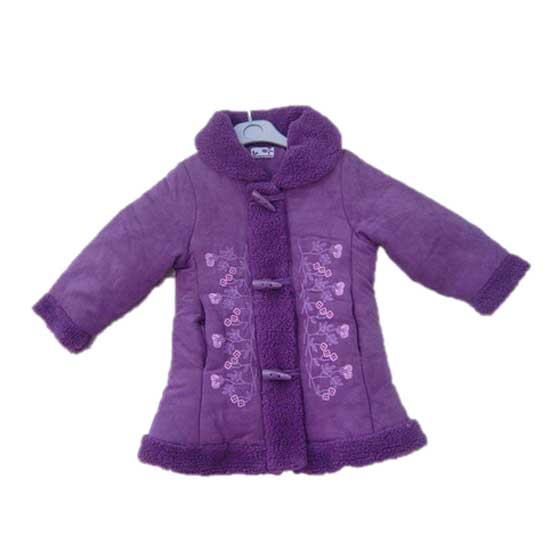 This cute jacket comes with an adorable purple color with charming floral pattern. Furry trimming decorates the collar, hem and cuffs of this jacket. This fancy jacket also comes with side pockets for wearers' convenience.