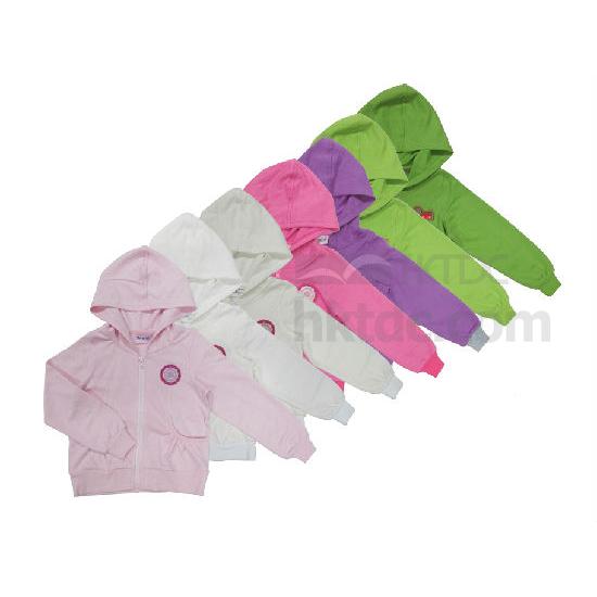 Girls' knitted jacket with hood and rib hem & cuffs. It is sporty design, zipper opening and wears comfortable.