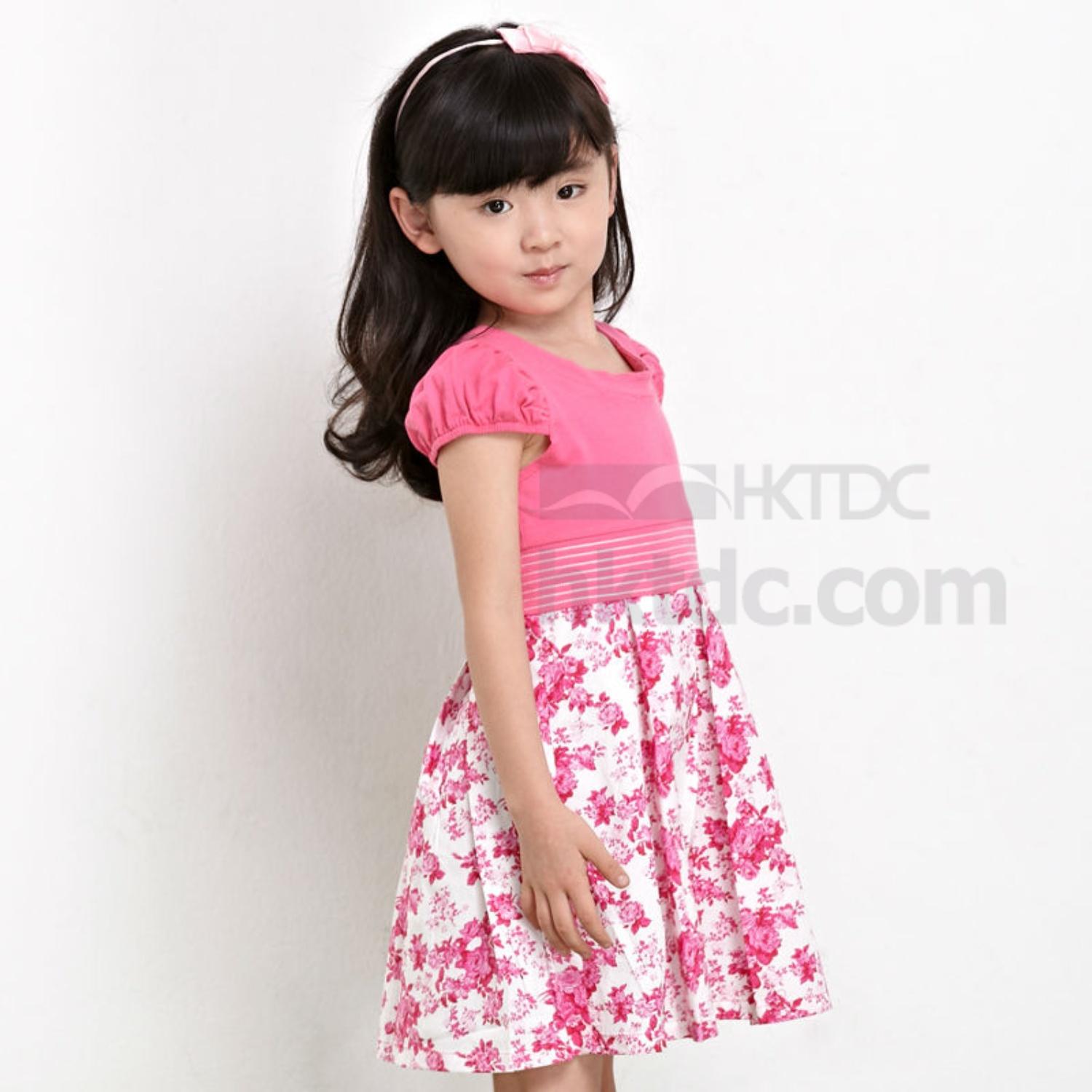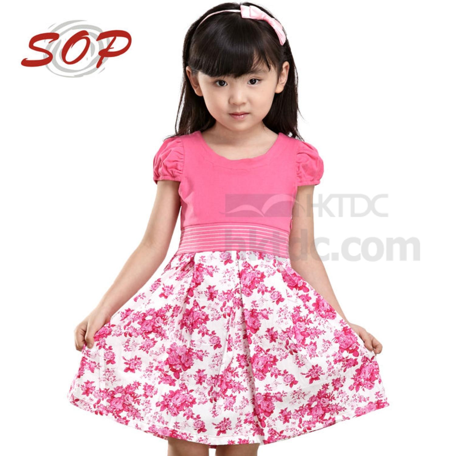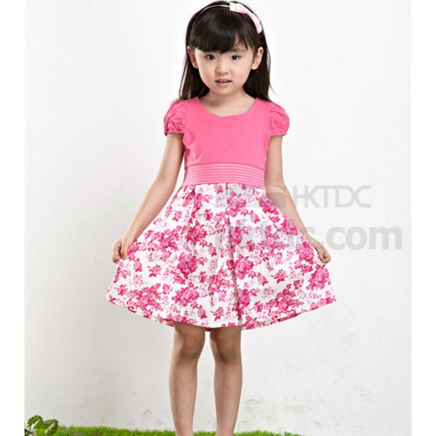 shown here is girls summer dress using high quality cotton fabric,plain top & floral printed full skirt.