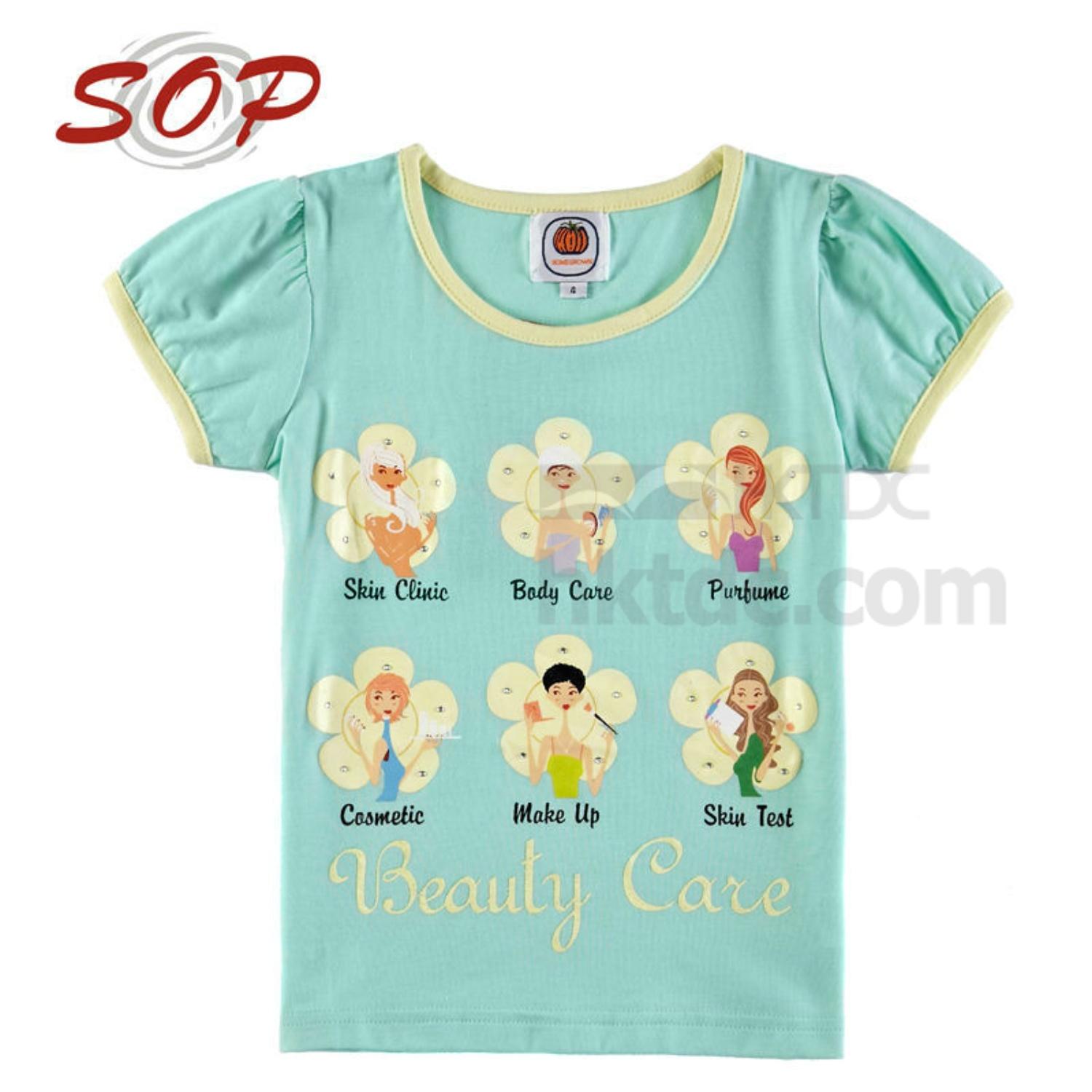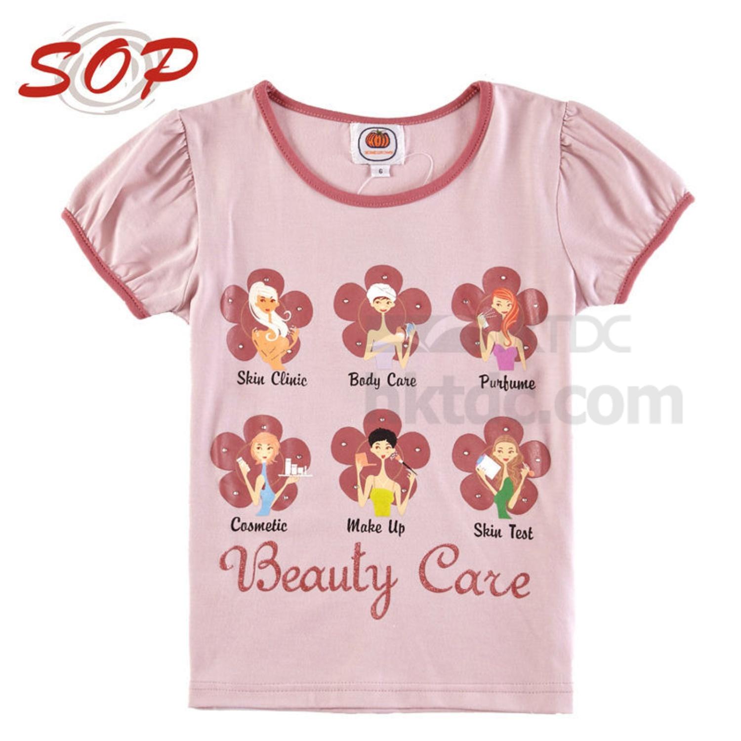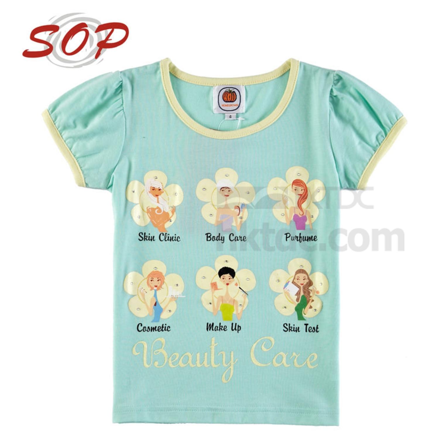 high quality printed cotton T-shirt for kids,with short ruffle sleeves.