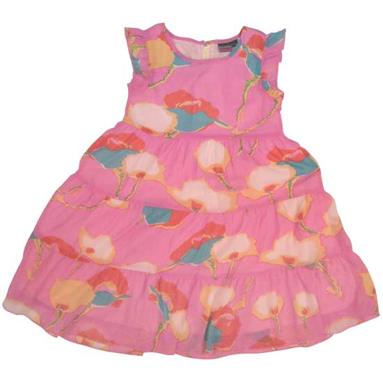 This exquisite one-piece sleeveless dress features floral patterns all over, a 3-tiered skirt, and a round neckline. Made of high-quality fabric, it offers heavenly softness and gratifying wearing comfort. This feminine dress falls perfectly at the knees.