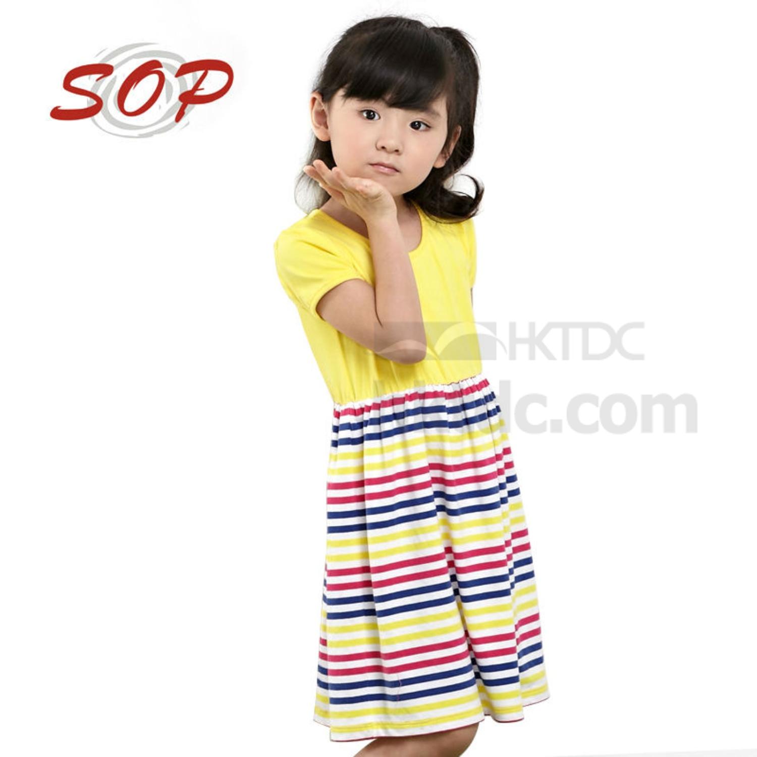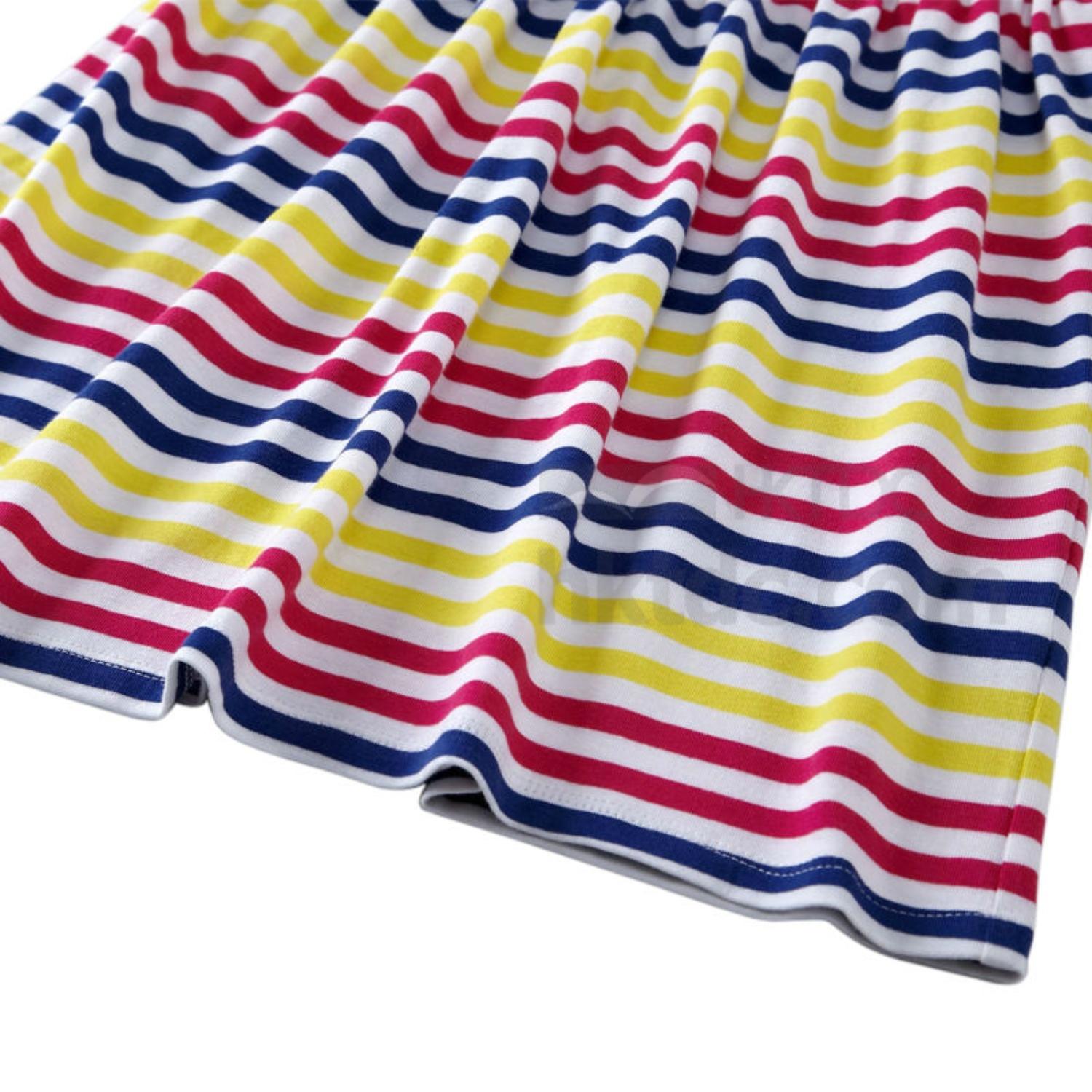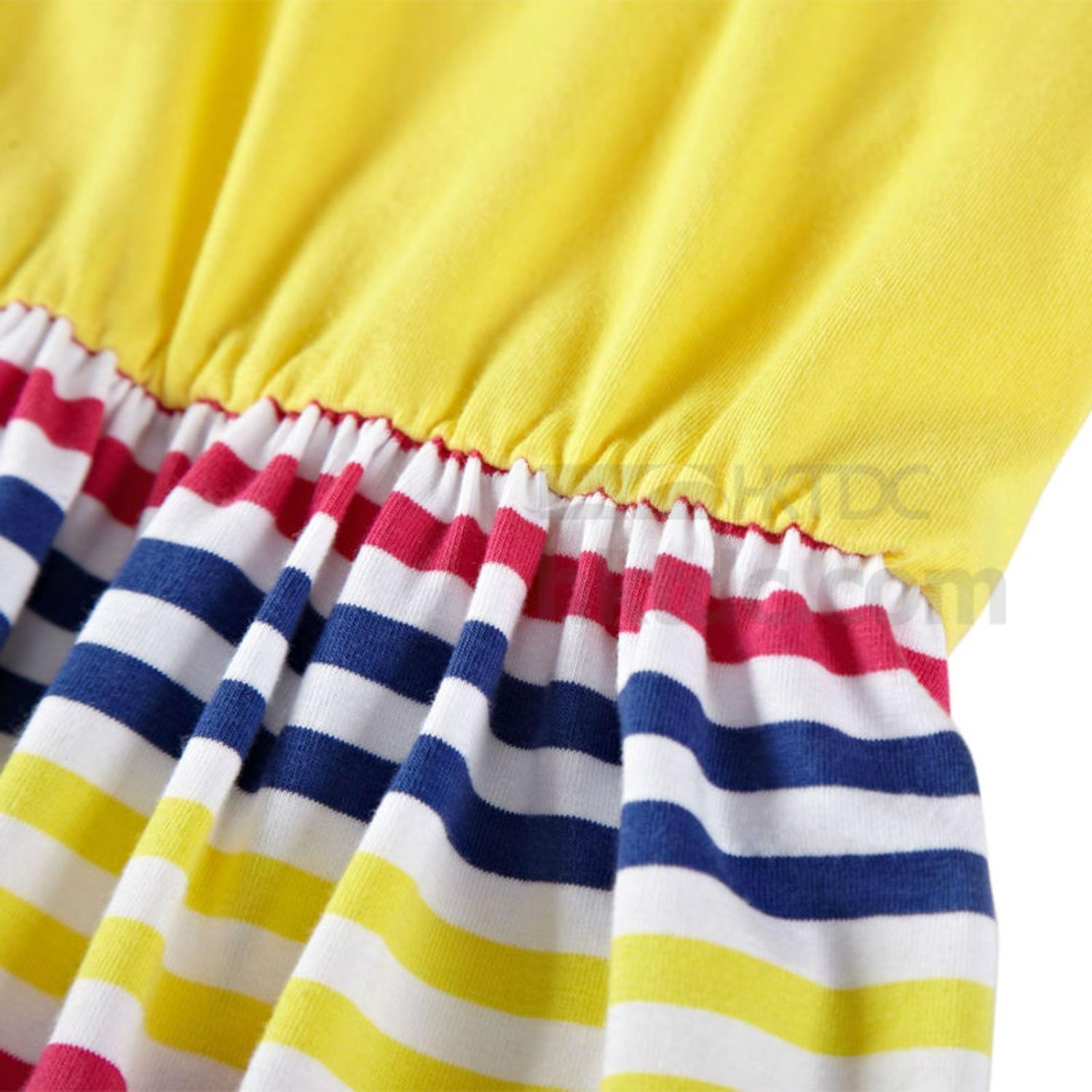 shown here is girls summer dress with plain top and striped skirt,using high quality soft cotton fabric.